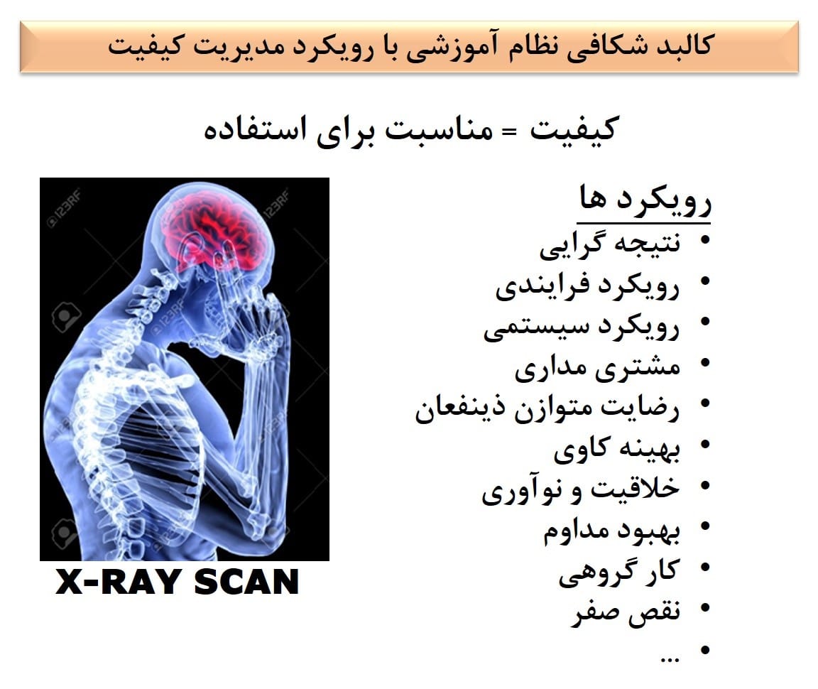 باید اشاره کرد در بحث مدیریت کیفیت ما از هر محصولی که تولید میشود انتظار اثربخشی با حداقل هزینه و انرژی داریم که به معنای کیفیت و بهره وری است. بنابراین نظام آموزشی دارای کیفیت نبوده و برای کار هدفمند نشده و فقط برای درس خواندن هدفگذاری شده است. فرد فارغ التحصیل شده از نظام آموزشی مهارت های لازم برای کار و زندگی ندارد. بطوریکه برخی افراد در شغل های متفاوت از مدرک و دوره های آموزشی مشغول به کار هستند.
