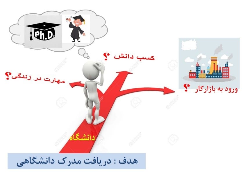 در نظر داشته باشید هدف آن است که دانشجو و فراگیرنده دانش در بازار کار جذب شود اما بازار کار مصرف کننده نهایی و واقعی در نظام آموزشی است اما هدفگذاری در سیستم آموزشی بر این است که فراگیرنده دانش در داخل سیستم جذب شود که بازهم لازم است دوره های تربیت دبیر و مدرسی فراگرفته شود.